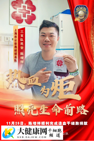 藏蓝为甲,守护万家安宁;热血为炬,照亮生命前路。11月28日,上海市公安局经济犯罪侦查总队民警陈增祥顺利完成造血干细胞捐献,为一位血液病患者送去了“生命的种子”,成为上海市第763例造血干细胞捐献者,同时也是上海经侦总队首例成功捐献的民警。